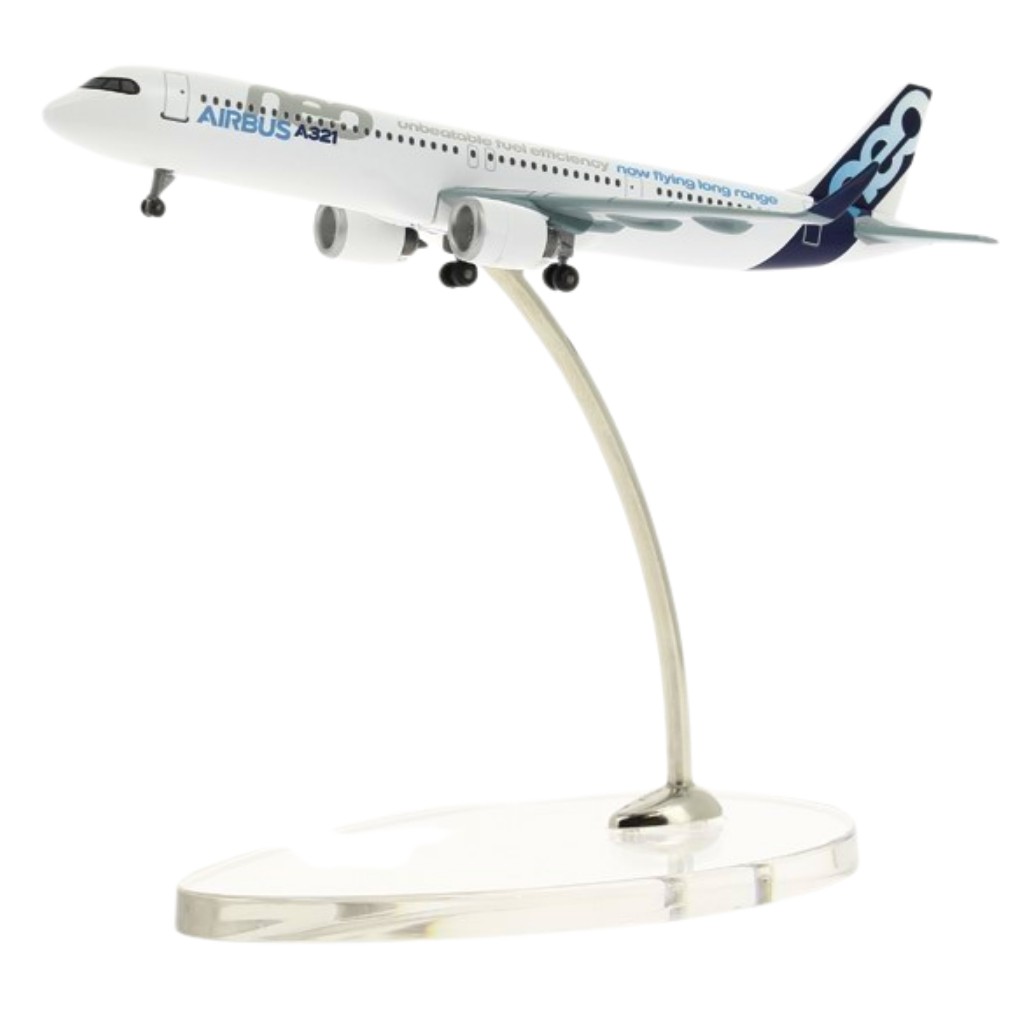 Das hochwertige Spritzgussmodell des A321neo long range im Mastab 1:400 ist im Tampondruckverfahren bedruckt, spritzlackiert und mit einer Schicht aus Hochglanzlack veredelt. Es ist sehr detailgetreu, hat einen massiven, schweren Rumpf aus Metall, spritzgegossene Flügel und Leitwerk, ein Fahrwerk und einen Ständer. Verpackt in einer bunt bedruckten Airbus-Verpackung.