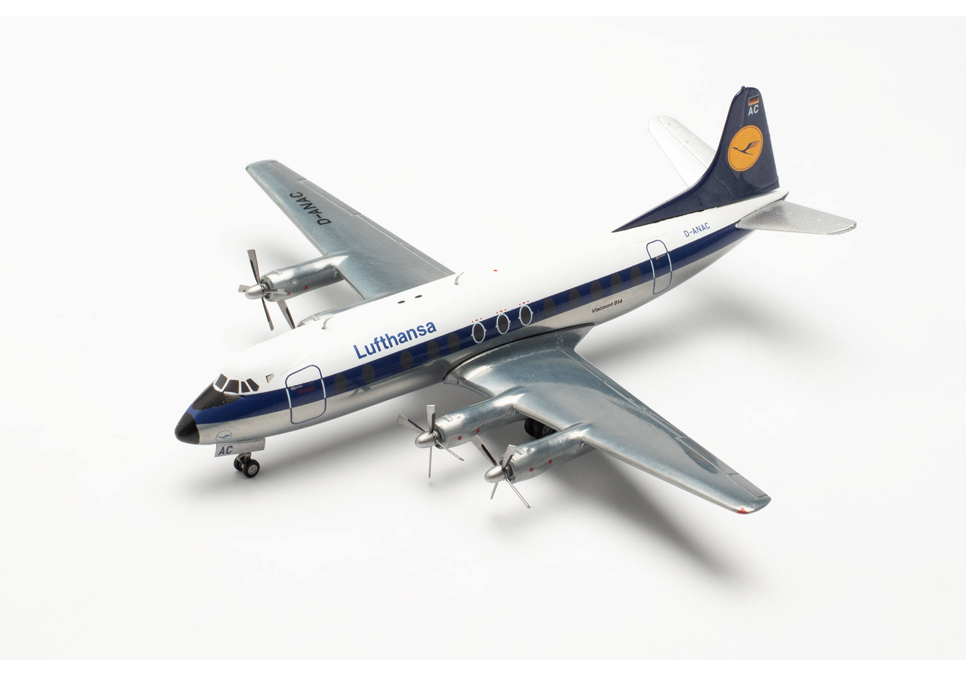 Zügig nach der Wiederaufnahme des Flugbetriebs im Jahr 1955, bestellte die Deutsche Lufthansa AG erste Boeing 707 für die Langstrecke. Für den Kurz- und Mittelstreckenbereich entschied sie sich für die modernste Version der Vickers Viscount mit Wetterradar und leistungsstarken Propellerturbinen. Das Original mit der Kennung D-ANAC wurde 1961 als zehnte von elf Viscount in Dienst gestellt und erhielt später noch das 1968 eingeführte „Spiegelei“-Design mit dem gelben Kreis auf blauem Grund auf dem Leitwerk, bevor es 1971 verkauft wurde.