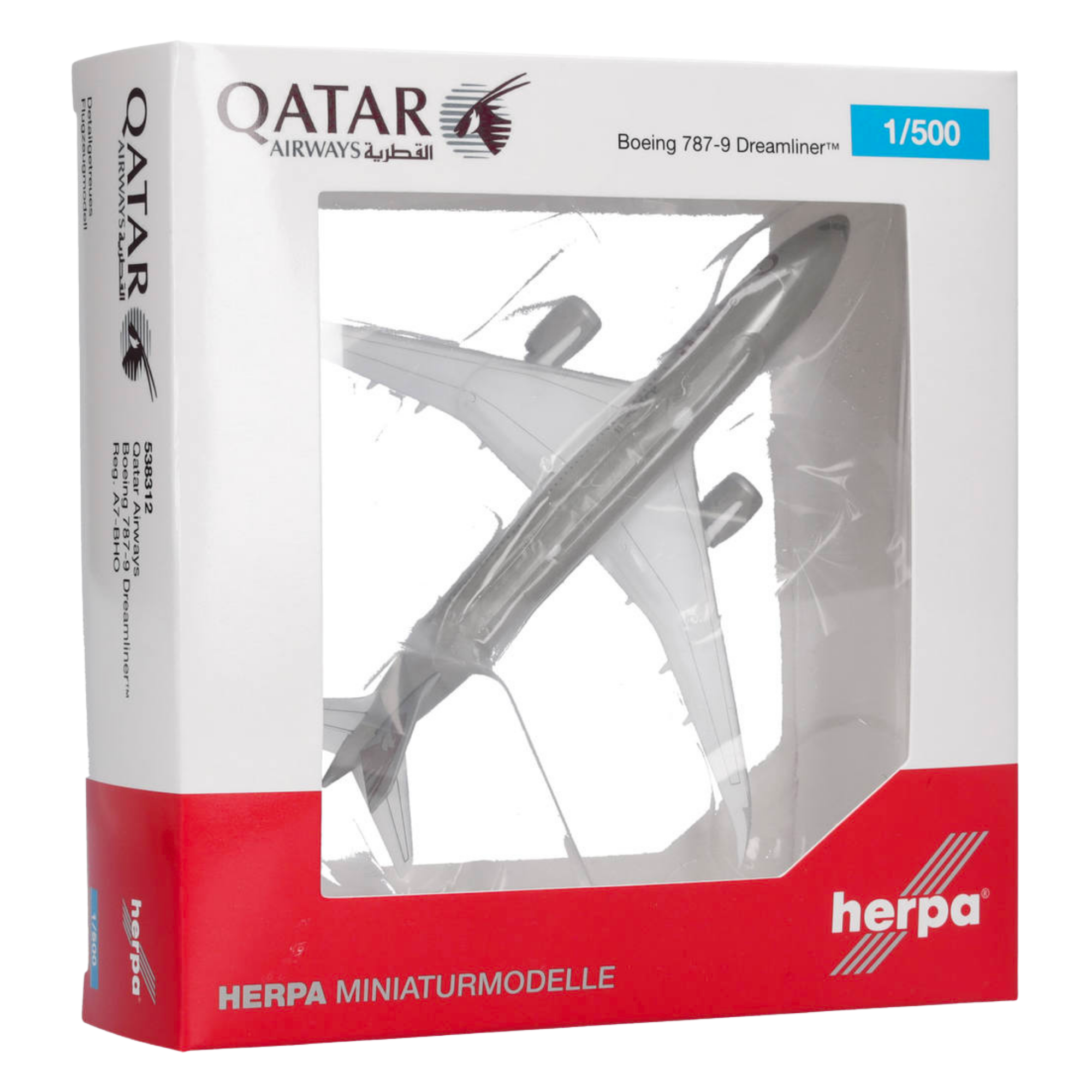 Mit dieser Neuheit schließt Herpa eine bedeutende Lücke in der Qatar Airways-Flotte im Maßstab 1:500. Neben 30 Exemplaren von Boeings Dreamliner mit dem ursprünglich kurzen Rumpf, betreibt die nationale Fluggesellschaft Katars derzeit weitere 18 Exemplare der längeren 787-9 Variante, die in einer Zwei-Klassen-Bestuhlung für 311 Passagiere konfiguriert sind. Vier weitere 787-9 sollen im Laufe des Jahres 2025 folgen.